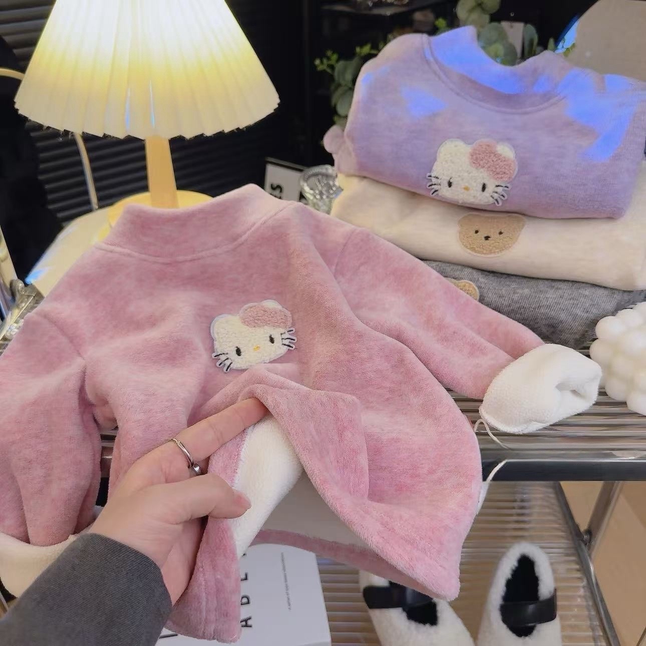 卡通加絨保暖上衣 🔺顏色: 粉紅色/紫色/灰色/米白 . 🔺尺碼: 80/90/100/110/120/130/140/150 . ⚠️購買前先確認尺碼,貨一出門恕不退換 ⚠️製造過程或許有小瑕疵屬正常 ⚠️圖片興實物有機會小許色差,以實物為準