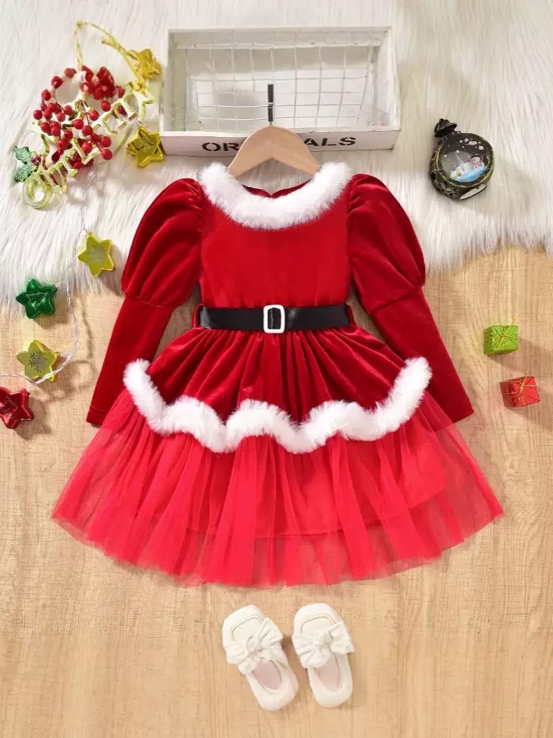 女童聖誕連身裙 . 🔺尺碼: 90/110/120/130/130 . ⚠️購買前先確認尺碼,貨一出門恕不退換 ⚠️製造過程或許有小瑕疵屬正常 ⚠️圖片興實物有機會小許色差,以實物為準