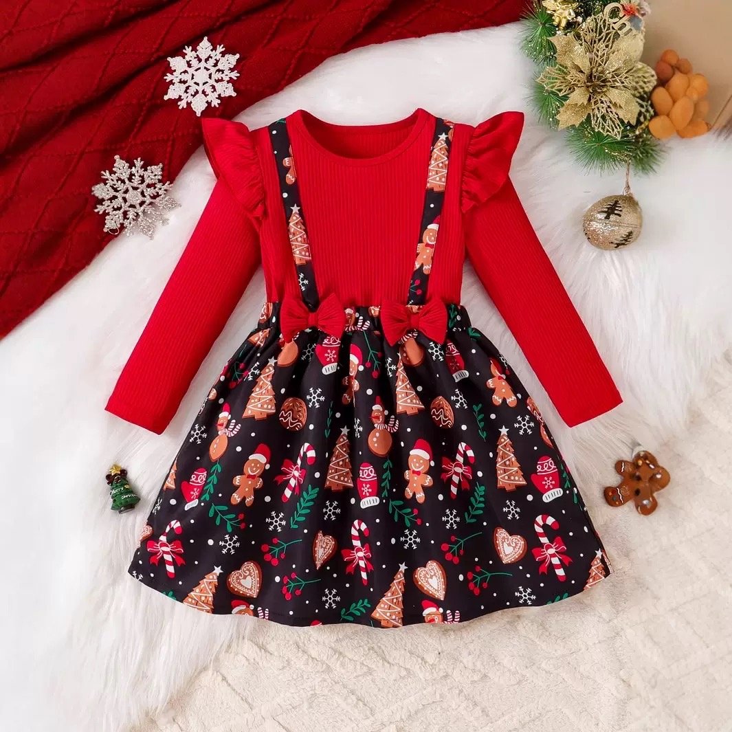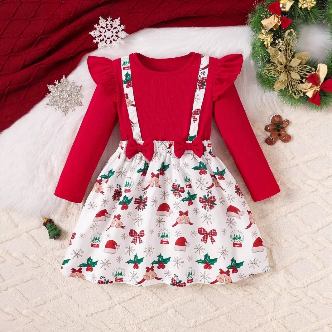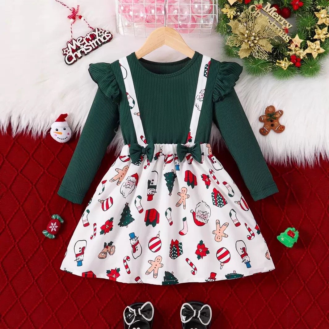 女童荷葉邊聖誕連身裙 . 🔺尺碼: 100/110/120/130/130 . ⚠️購買前先確認尺碼,貨一出門恕不退換 ⚠️製造過程或許有小瑕疵屬正常 ⚠️圖片興實物有機會小許色差,以實物為準