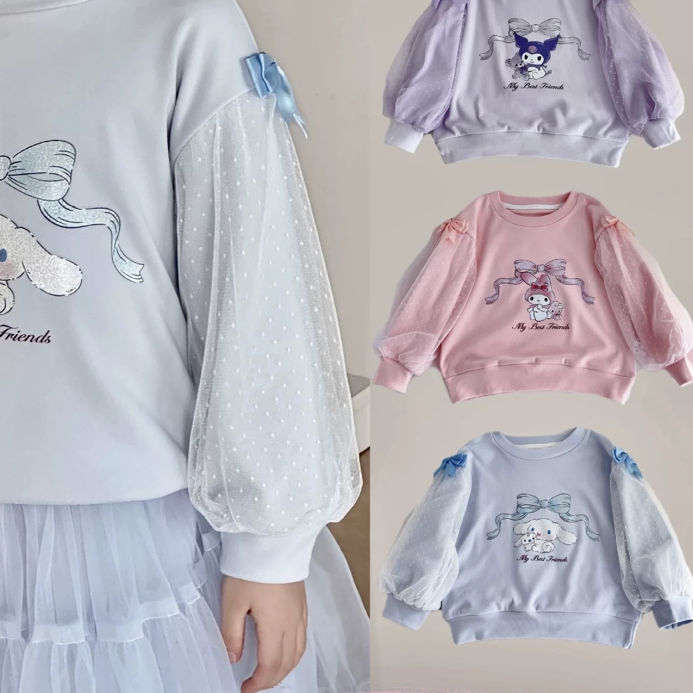 呢款手袖位超靚😍公主袖蕾絲設計,著上去超有公主風❤️ 🔺顏色: Melody / Cinnamoroll / Kuromi . 尺碼: 100/110/120/130/140 . ⚠️購買前先確認尺碼,貨一出門恕不退換 ⚠️製造過程或許有小瑕疵屬正常 ⚠️圖片興實物有機會小許色差,以實物為準